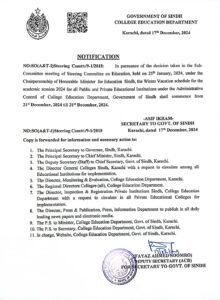محکمہ تعلیم سندھ نے تمام تعلیمی اداروں میں موسم سرما کی تعطیلات کا اعلان کر دیا