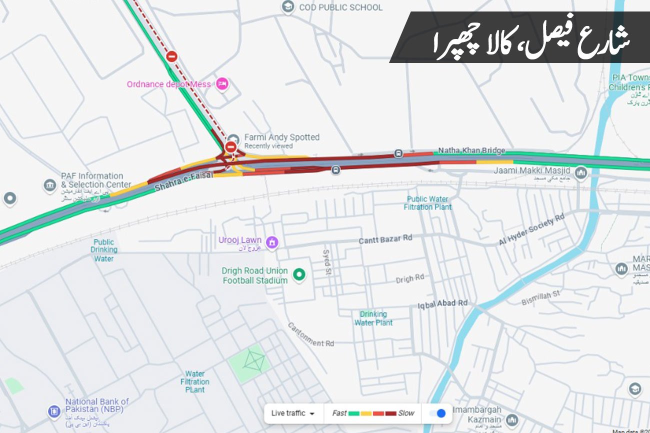 شمس الدین عظیمی روڈ بند ہونے کے باعث ٹریفک کو ٹوٹل پیٹرول پمپ سے سروس روڈ کی طرف ڈائیورشن دی گئی ہے۔