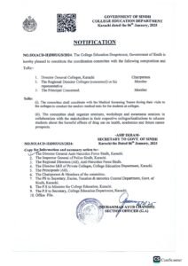 نوٹیفکیشن سیکریٹری کالج ایجوکیشن آصف اکرام کی جانب سے جاری کیا گیا ہے جس کے مطابق محکمہ کالج ایجوکیشن میں ایک سہ رکنی کمیٹی قائم کر دی گئی ہے جو ڈائریکٹر جنرل کالجز سندھ، متعلقہ ضلع کے ریجنل ڈائریکٹر اور متعلقہ کالج پرنسپل پر مشتمل ہوگی۔