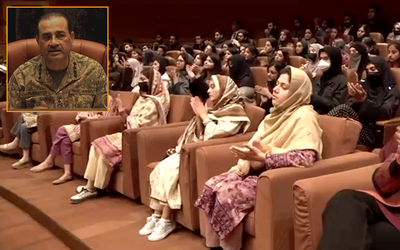 پاک فوج کے شعبہ تعلقات عامہ (آئی ایس پی آر) سے جاری بیان کے مطابق چیف آف آرمی اسٹاف جنرل سید عاصم منیرنے پاکستان بھر سے آئے ہوئے نوجوان یونیورسٹی اور کالج کے طلبہ سے خطاب کیا۔