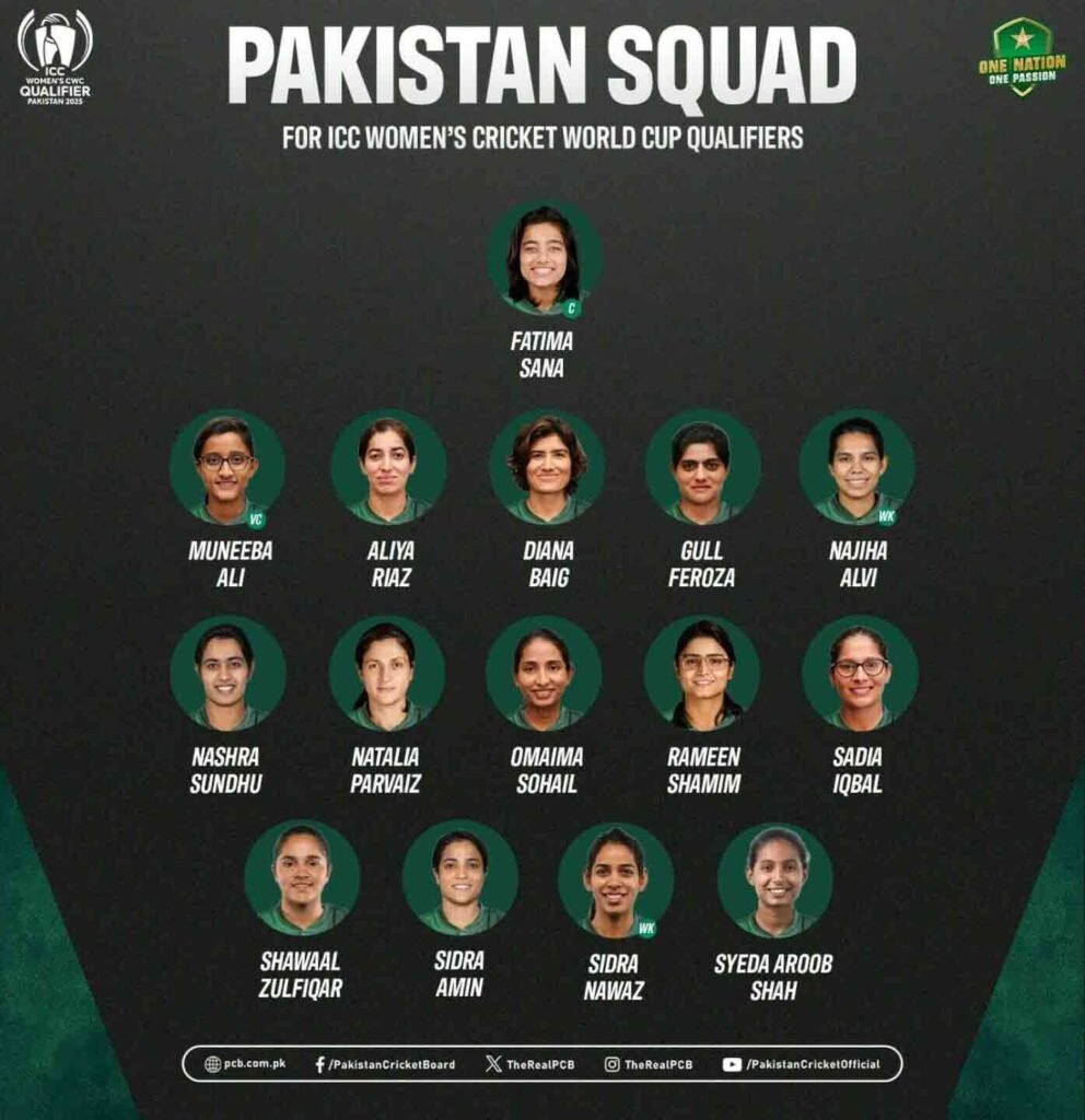 Pakistan has announced a 15-member squad for the ICC Women’s Cricket World Cup Qualifiers, set to take place in Lahore from April 9 to 19, the Pakistan Cricket Board (PCB) confirmed.